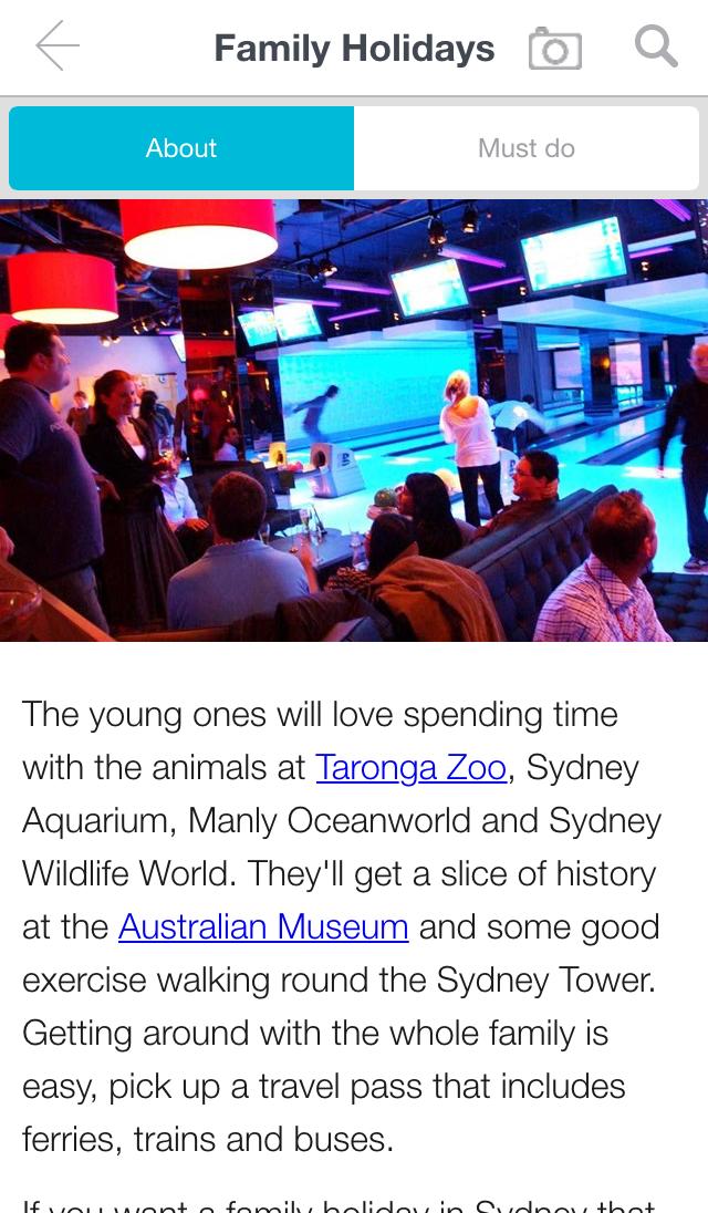 Save your favourites or build your own itinerary, to view offline. Plus you can check-in while in Sydney to share your travel experiences with your friends.