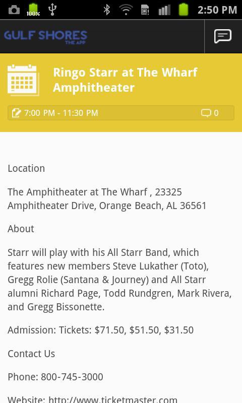 Welcome to the GULF SHORES App, serving the greater Alabama GULF SHORES and Orange Beach areas! With the GULF SHORES App you can find restaurants, bars, things to do and more via gps. You can share photos, and comments with other users with in the app. You can also share your postings on FB with the app too! You can find weather info for GULF SHORES by clicking the "Weather" icon as well as search local GULF SHORES News on local events. Be sure to use the "Events" section to find the latest concerts and local activities.