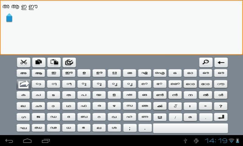 A Micromax - Funbook Tablet only touch keyboard for Malayalam using unicode with a unique layout which could be learnt and operated even by a person who is new to touch devices in under 1 minutes.