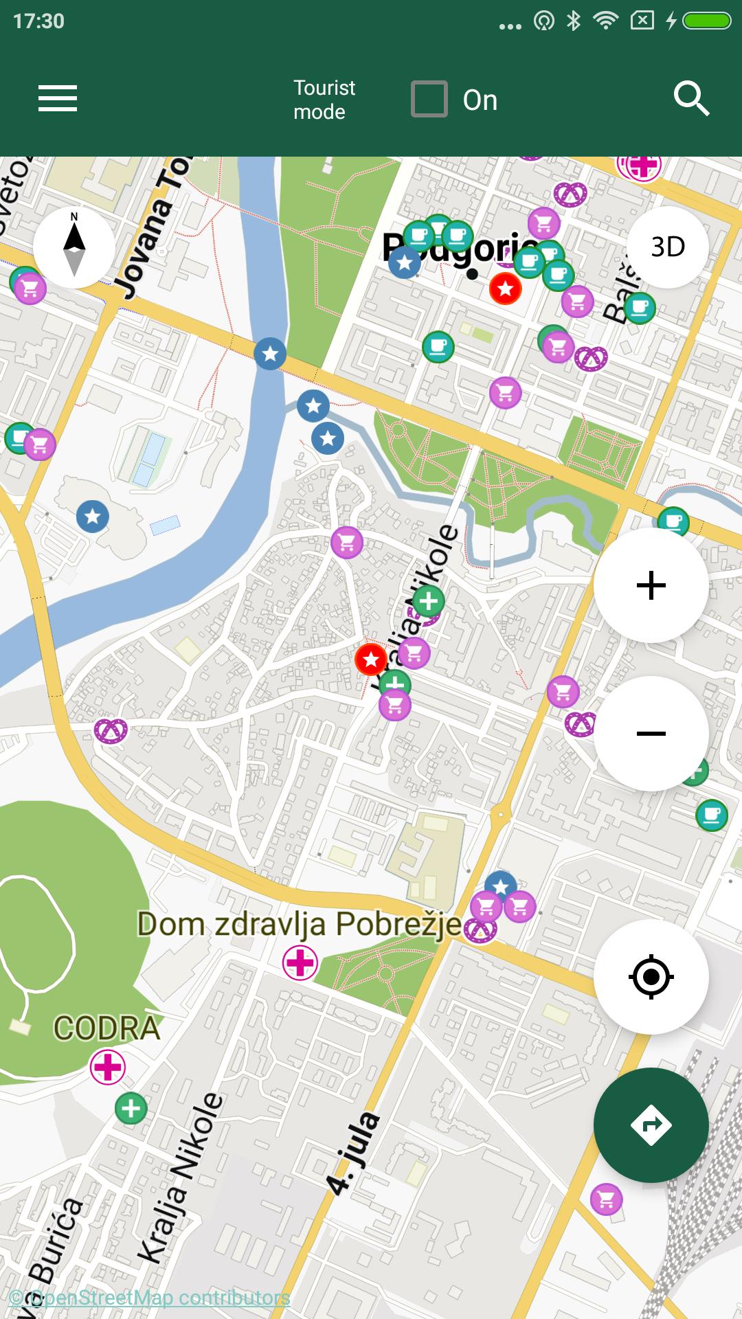 Off-line map of Podgorica (Montenegro) - A free travel application. It will: map out the route, show sight-seeing attractions with photos and descriptions, find the nearest coffee shop or supermarket. Internet connection not required.