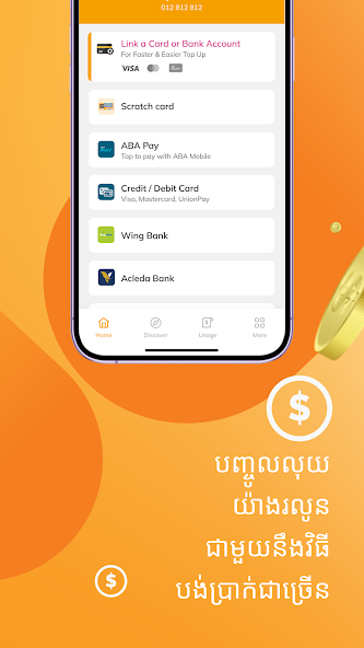 You can also Top-Up online. Simply link your payment account. We’re partnered with ABA Pay, Wing, Acleda, Alipay, WeChat Pay, Visa, Mastercard and UnionPay.
