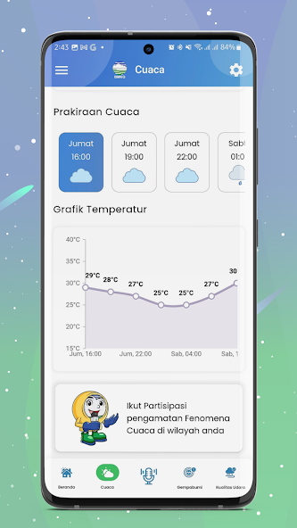 Weather, climate, air quality and earthquake information that occurred in Indonesia. This mobile application was officially released by the Meteorology, Climatology and Geophysics Agency (BMKG).
