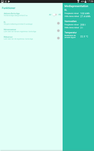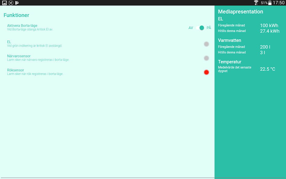 The app also shows your consumption of hot water and electricity, and this last month, and an average room temperature then one day back.