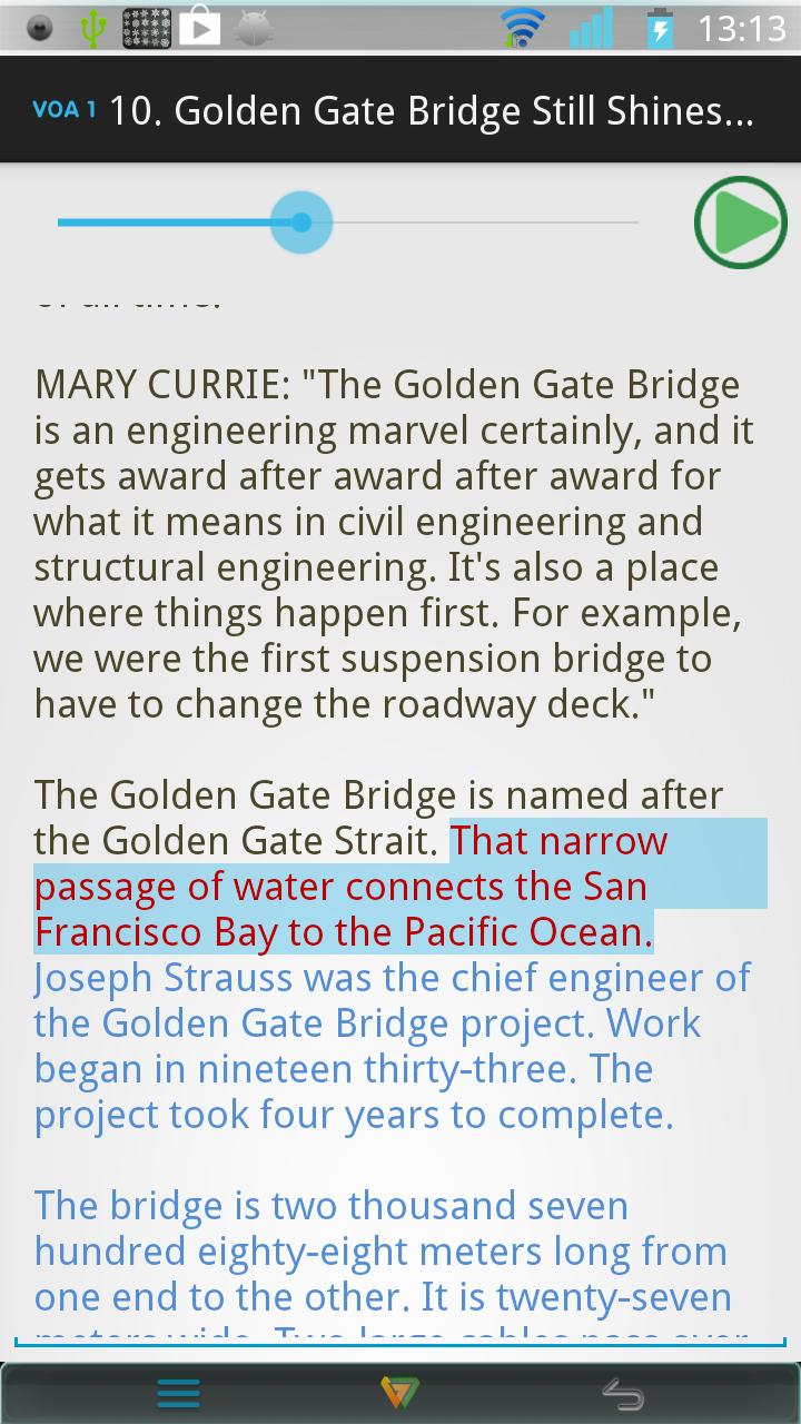 During the lesson play, the app will auto show which sentences is reading. This is the strong point of this app.