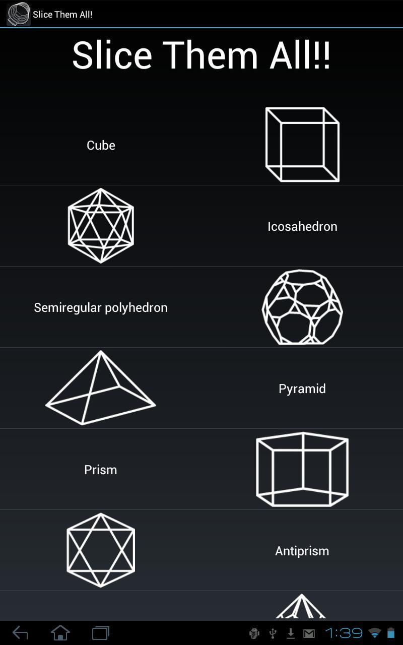 Slice Them All! is a unique interactive 3D encyclopedia of a solid geometry. Ideally suited for education and for entertainment as well.