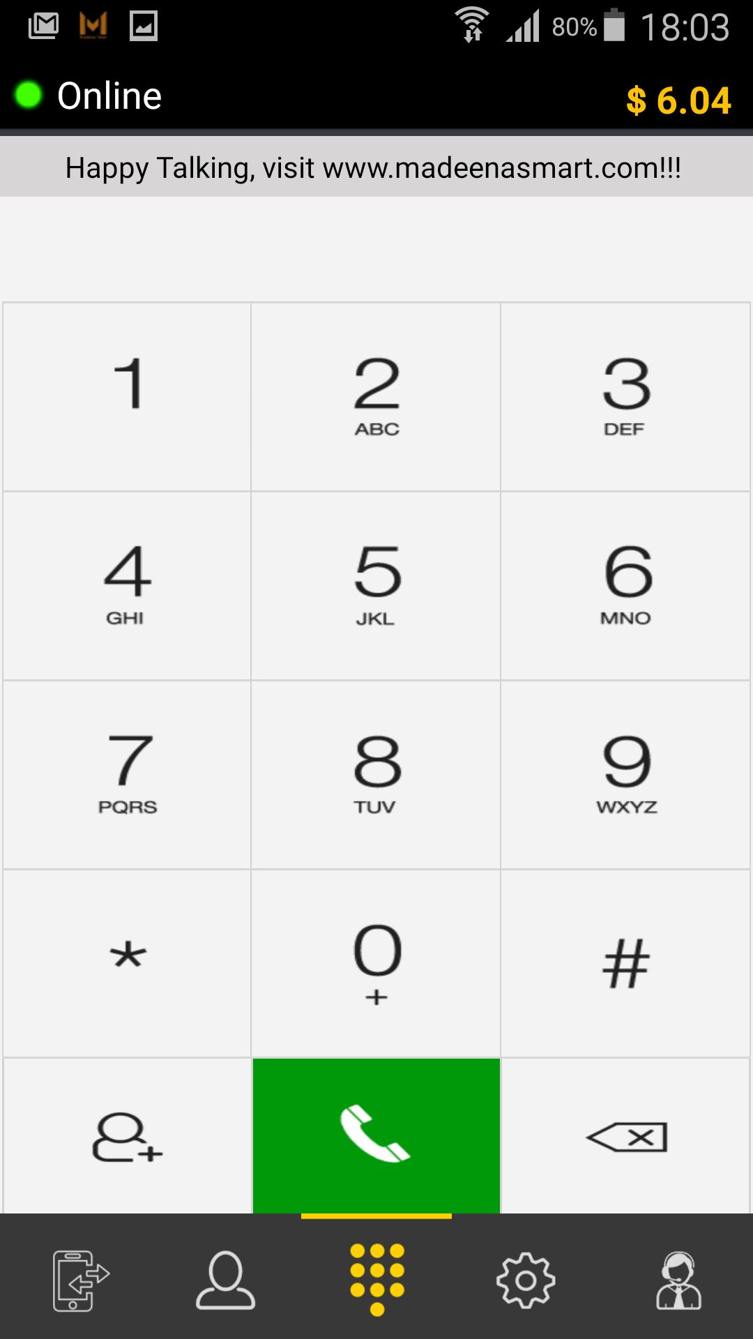 MadeenaSmart is a High Definition Voice Mobile VoIP application for Android, featuring functionality like VoIP, IM, Video. This application works in 2G/3G/4G/WiFi environments. Its QoS feature ensures exceptional voice quality, bandwidth normalization, Voice/Video packet negotiation.