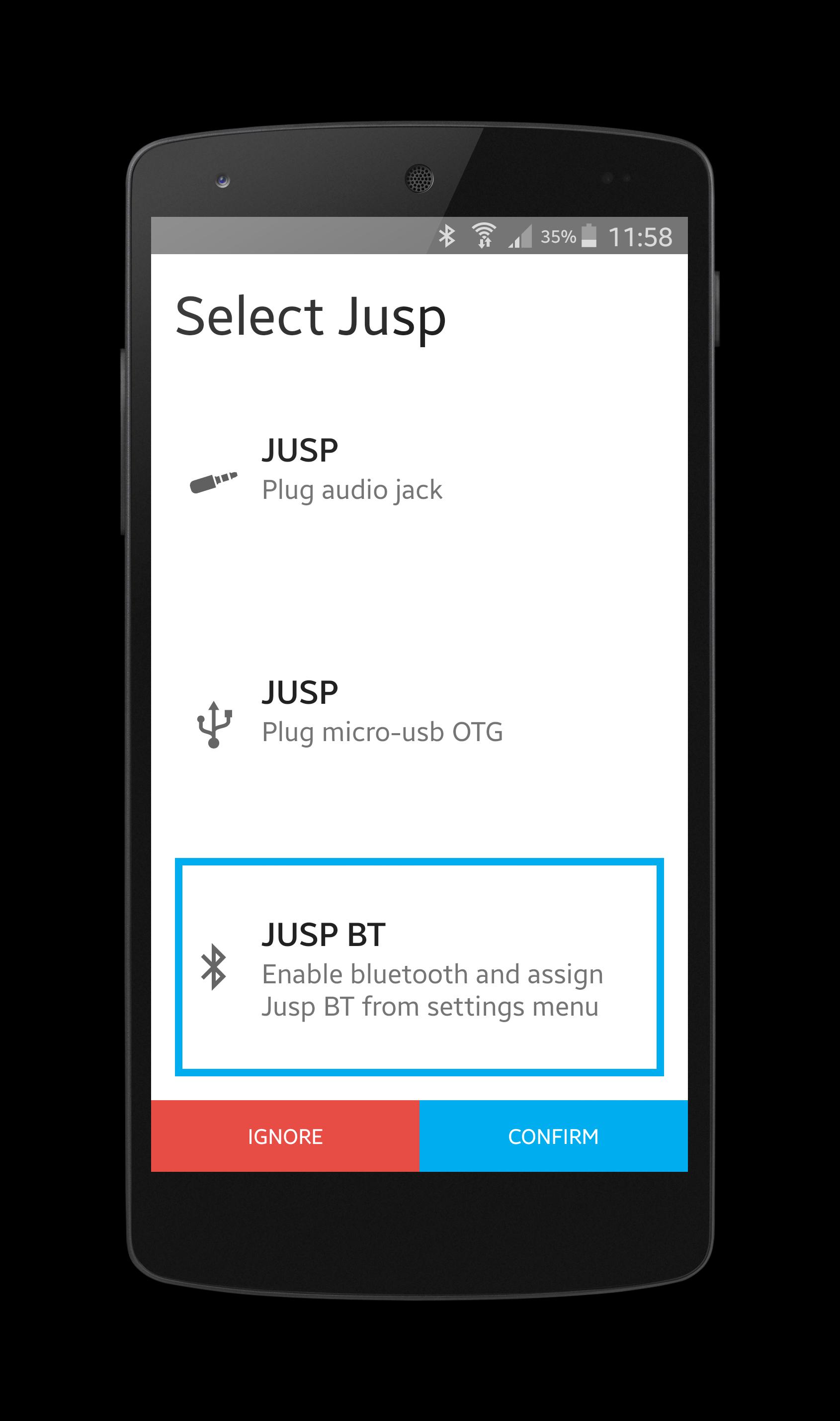 - Jusp BT : Connect Jusp BT to your smartphone or tablet through bluetooth pairing. Please check if your smartphone or tablet supports Bluetooth connectivity before buying Jusp BT.