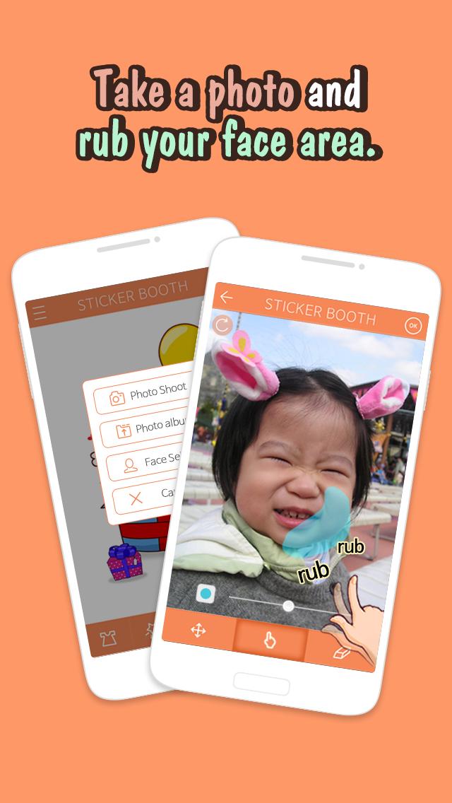 Sticker Booth is application that you can make sticker pictures to express your feelings by using your own face. You can give good impression to your friends by posting the stickers on social networks.