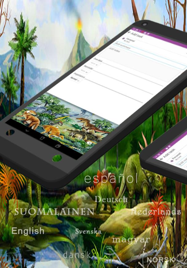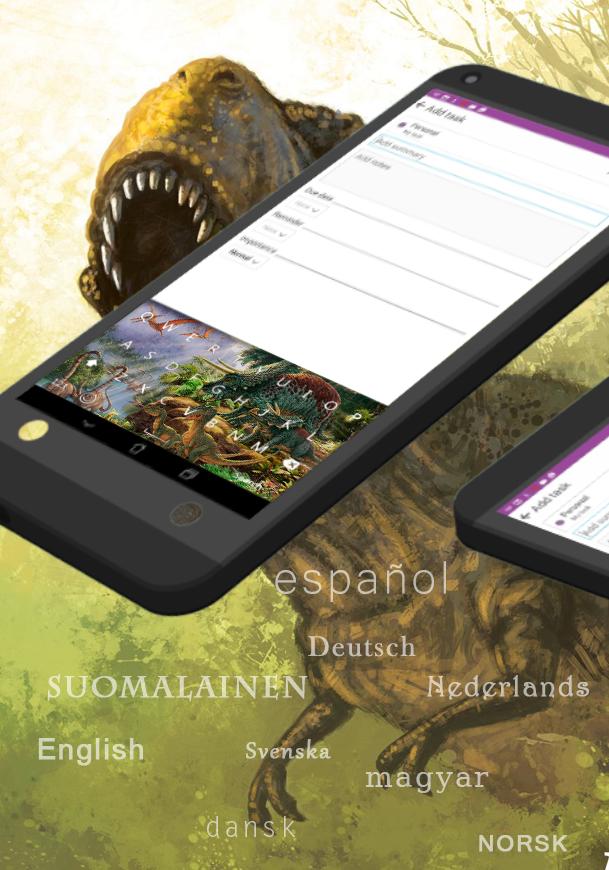 GO Keyboard Jurassic Dinosaurs have layout support for QWERTY, AZERTY, QWERTZ, even DVORAK or Colemak and supports multiple languages with 12 built-in languages: English, Spanish, French, German, Portuguese, Danish, Dutch, Finnish, Hungarian, Italian, Norwegian, and Swedish. If you would like to add any other languages, you can inform our Support team by e-mail.