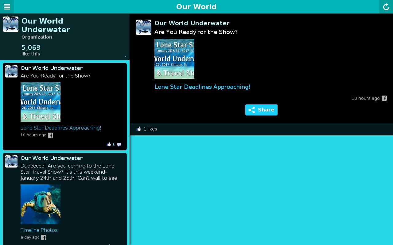 Our World-Underwater is the largest dive show and travel show in the Midwest. Mu