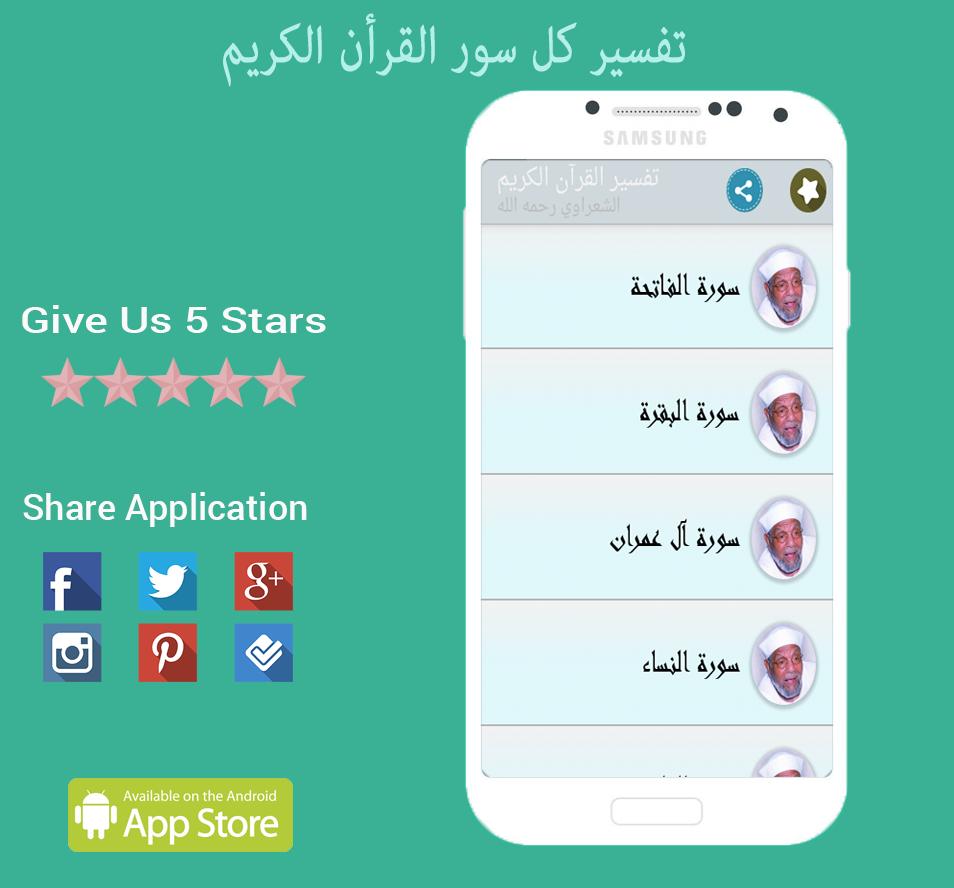 This application contains the Tafsir of the Coran by Sheikh Mohamed Metwally El Shaaraw. The application and contains a list of all sourah in the Holy Quran on a number of audio clips that can be heard on the Internet.