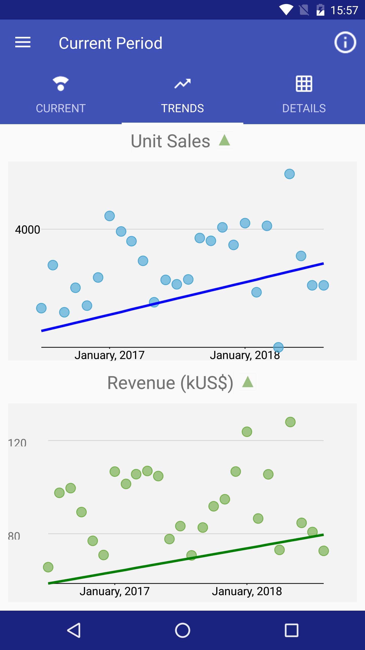 يقوم تطبيق MyBI بتحميل بيانات المبيعات من ورقة Google ، ويلخصها وينتج لوحة معلومات بسيطة وفعالة يمكن استخدامها على الأجهزة المحمولة وكذلك على سطح المكتب.