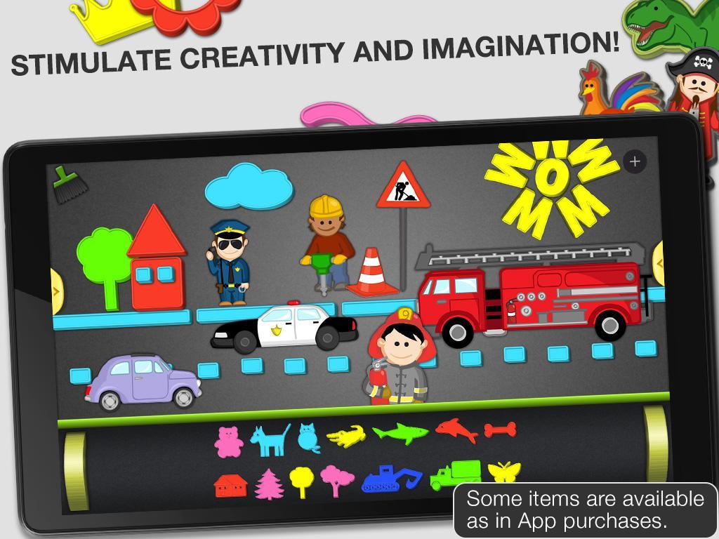تطبيق بسيط ومباشر ، والذي يحفز الإبداع والخيال لأنه لا يحتوي على قواعد: سيقوم أطفالك بحرية بإنشاء قصص لا نهاية لها بأشكال المجموعة الكلاسيكية ومع المغناطيسات ذات الطابع.
