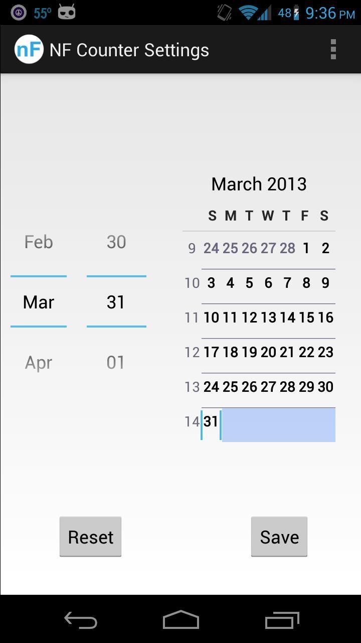 عداد يوم بسيط يحسب عدد الأيام التي مرت منذ أن بدأت شيئًا ما. كما أنه يحتوي على عنصر واجهة مستخدم يتيح لك التحقق من إحصائياتك مباشرة من شاشتك الرئيسية.
