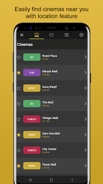 - إضافة دور السينما إلى المفضلة. سوف تظهر دور السينما المفضلة لديك في الأعلى في القوائم.