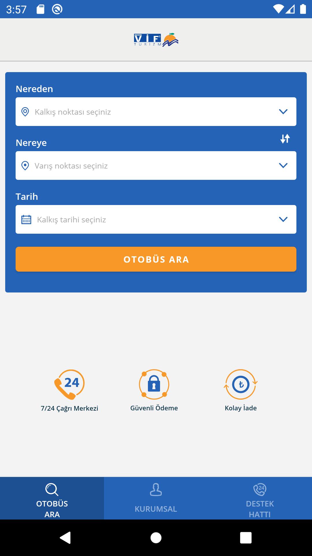 Mersin هو تطبيق Android يسمح ببيع تذاكر لنقل VIF Tourism Intercity.