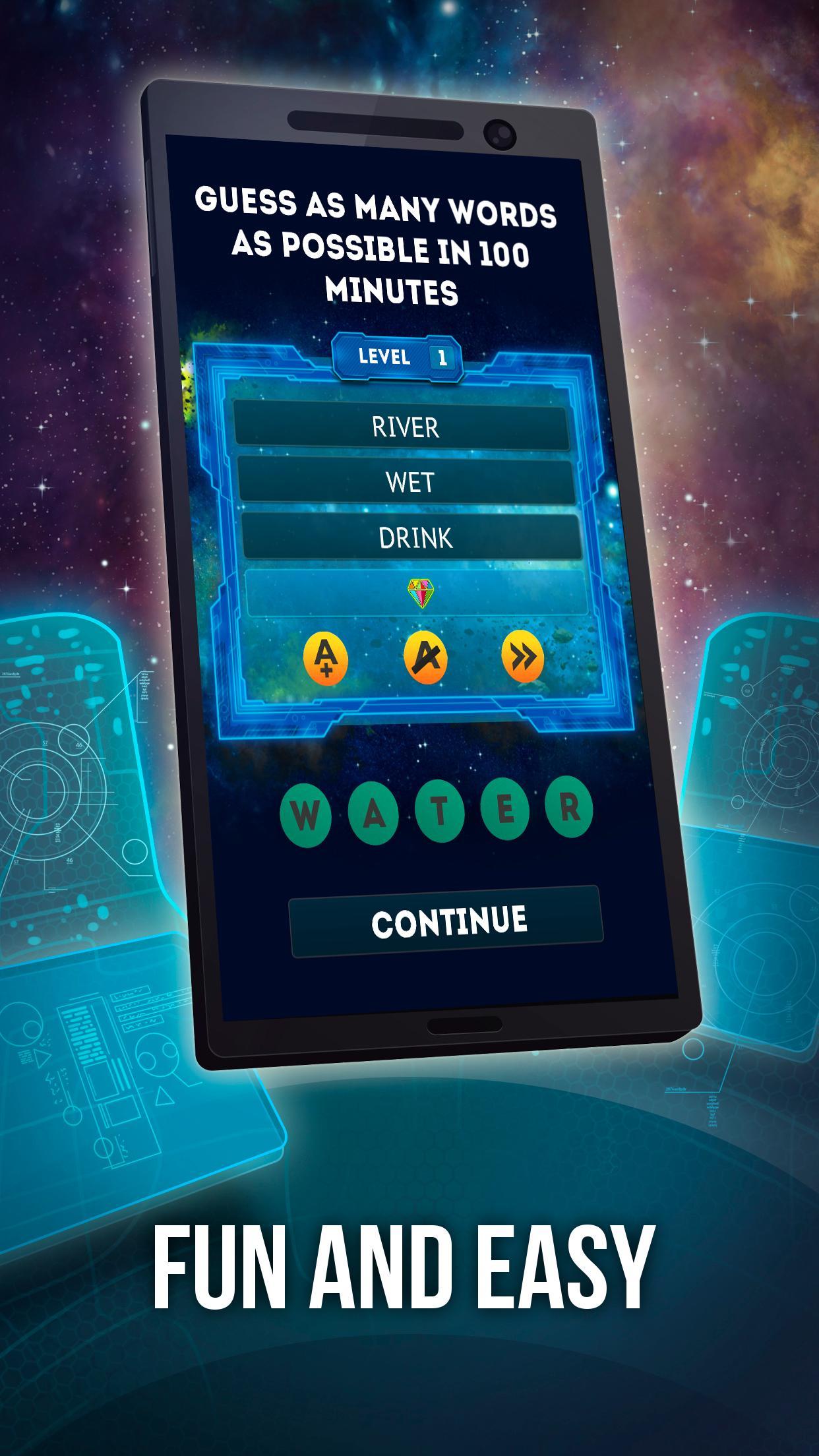 في هذه اللعبة السهلة للتعلم والتحدي بشكل متزايد ، يمكنك إدخال الاسم الصحيح أو الفعل أو الاسم المناسب ، بينما تنتقل السفينة الغريبة عبر الفضاء. يتم التلميح كل كلمة من خلال الوحي الذي يصل إلى أربع كلمات مرتبطة ، مع تلميحات إضافية متاحة لمخدوش الرأس الحقيقية. كل كلمة خمنت بشكل صحيح تكسبك بلورات الفضاء وتجعل الأجانب أقرب إلى وجهتهم.