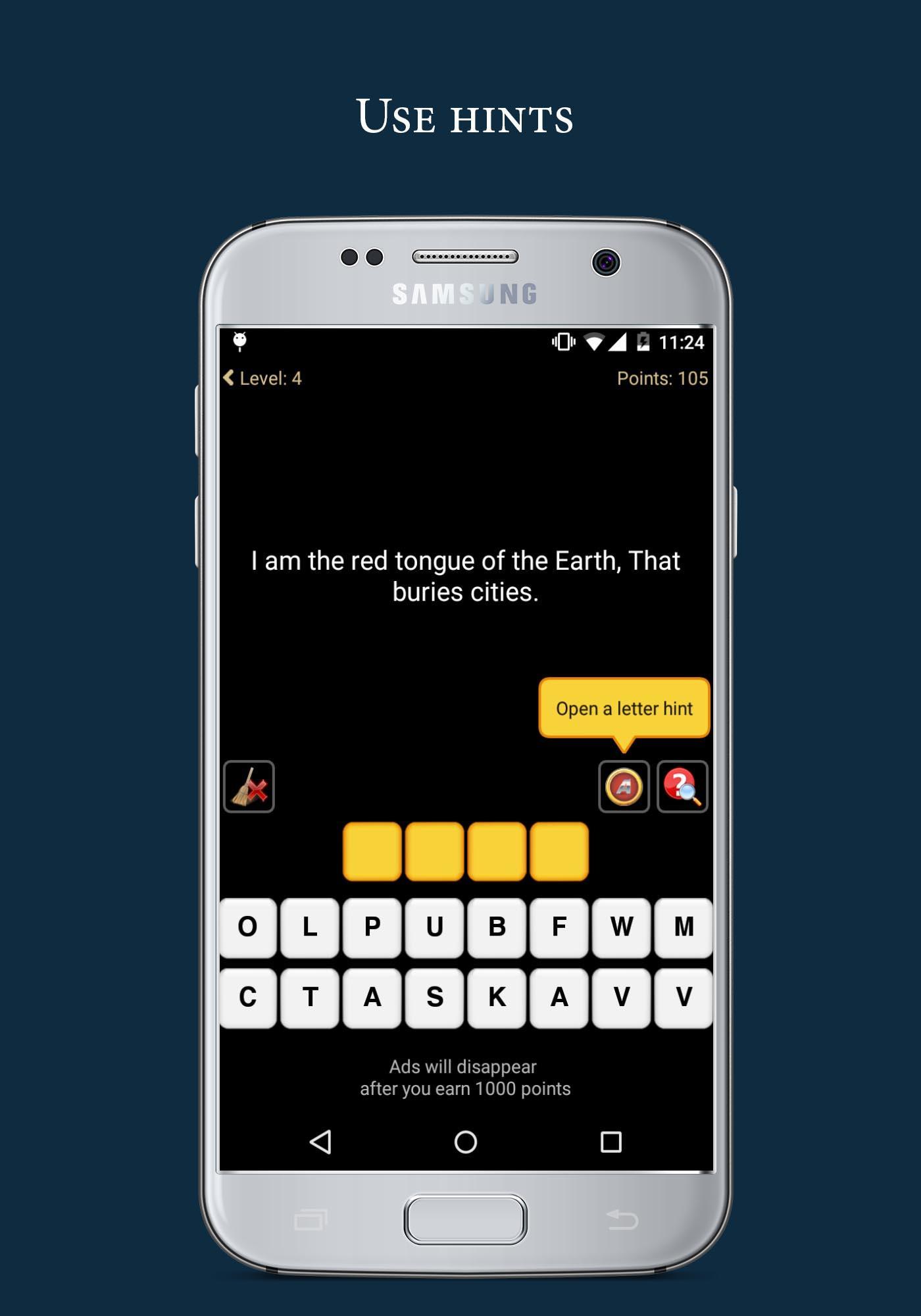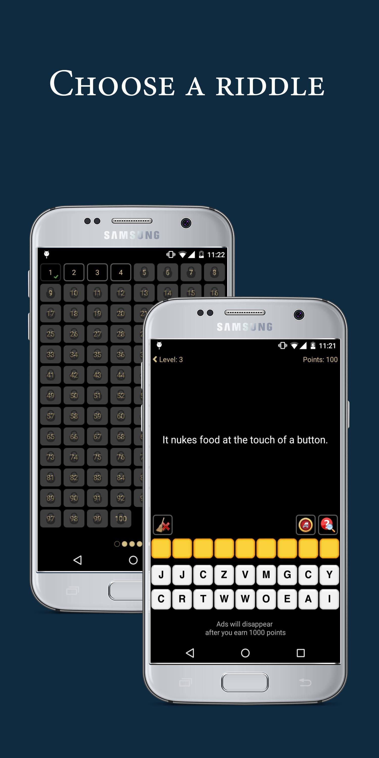- تختفي الإعلانات تلقائيًا عندما تكسب 1000 نقطة (تحتاج إلى الرد على 45 لغزًا بدون تلميحات)