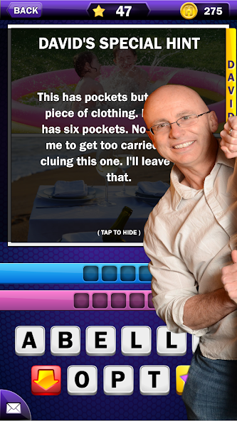 إجابة كل لغز هي Just 2 Words -إقران شائع ("نقاط براوني") ، اسم شخص مشهور ("Elton John") ، أو مجموعة كلمات ممتعة واضحة للجبهة واضحة بعد اكتشاف أدلة صور ديفيد!