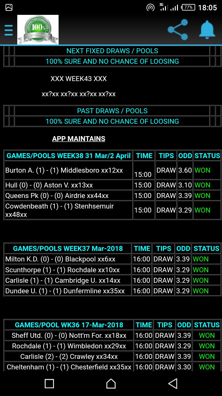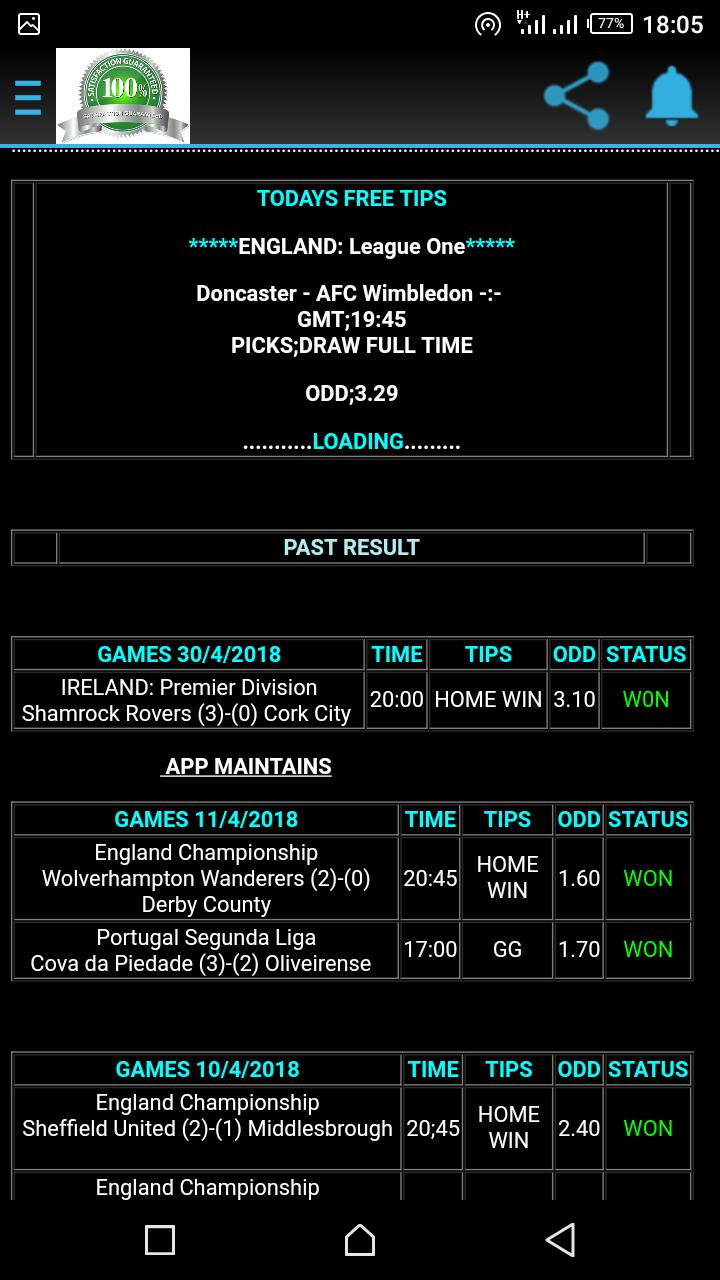 هذا تطبيق يوفر لك مجموعة متنوعة من التنبؤات المراهنة وفقًا لتفضيل الأشخاص المختلفين. نمنحك رهان طويل القسائم (محفوفة بالمخاطر) لأولئك الذين يشتركون في انخفاض. نحن نقدم أيضًا نصائح مزدوجة للفرصة لأولئك الذين يحبون اللعب بأمان. نحن نوفر مؤكدين 2+ نصائح لأولئك الذين يشتركون في ارتفاع الأرباح. أخيرًا ، نقدم أفضل (خبير) نصيحة لتحليلك لتحديد مدى موثوقية النصيحة.