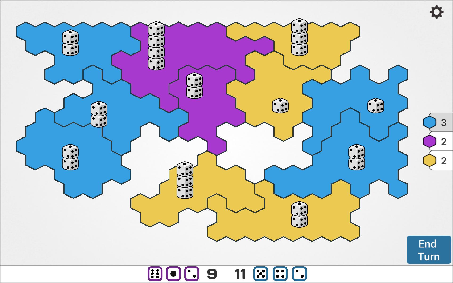 الغرض من اللعبة هو التحكم في الخريطة بأكملها. للهجوم ، حدد أراضيك مع ما لا يقل عن اثنين من الدرجات ، ثم اختر أراضي الخصم المحددة مع المحدد. الذين يلفون إجمالي عدد أكبر. يجب أن يتدحرج المهاجم عدد أكبر من المدافع. يمكنك الهجوم عدة مرات لكل منعطف. في نهاية المنعطف ، يتلقى اللاعب عددًا من الدرجات التي تساوي أكبر المناطق المتصلة التي يتحكم فيها. تمت إضافة الدرجات العشوائية. ثم انعطف يذهب إلى اللاعب التالي.