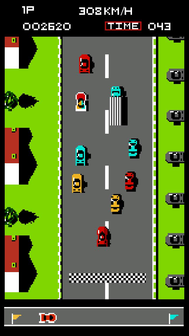 السباق دون نفاد الوقت ، أو ضرب سيارات أخرى أو نفاد الوقت (يتم إعادة تملأ الوقت عن طريق ضرب نوع خاص من السيارات)