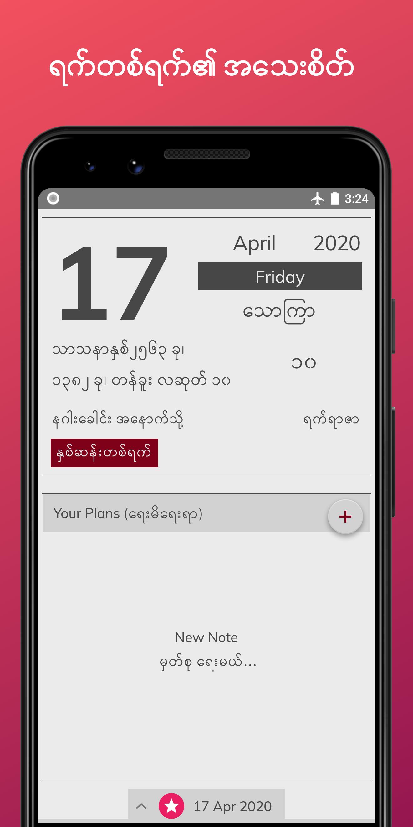• Myanmar -Kalender -Widget auf dem Startbildschirm