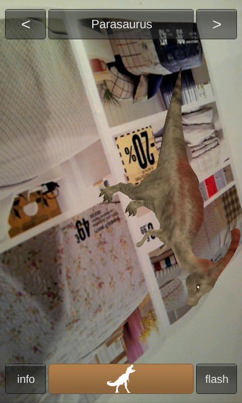 - Button "Flash": Zum Betrachten der Dinosaurier in dunklen Umgebungen.