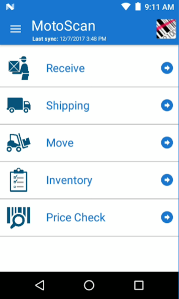 Die Bewerbung wird mit fünf Szenarien standardmäßig ausgeführt, erhalten, Versand, Umzug, Inventar und Preisprüfung. MotoScan ist so bereit oder Sie können es einfach für individuelle Bedürfnisse konfigurieren. Das Inventar ist das am häufigsten benötigte Datenerfassungsszenario. Sie können die App mit Ihrem eigenen Namen markieren