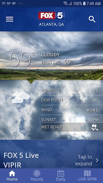 Verfolgen Sie Ihre lokale Prognose für die Gegend von Atlanta schnell mit der Free Fox 5 Weather App. Das verbesserte Design bietet Ihnen Radar-, Stunden- und Sieben -Tage -Wetterinformationen, nur durch Scrollen. Unsere Wetterwarnungen warnen Sie früh und helfen, Ihre und Ihre Familie bei Unwetter sicher zu machen.