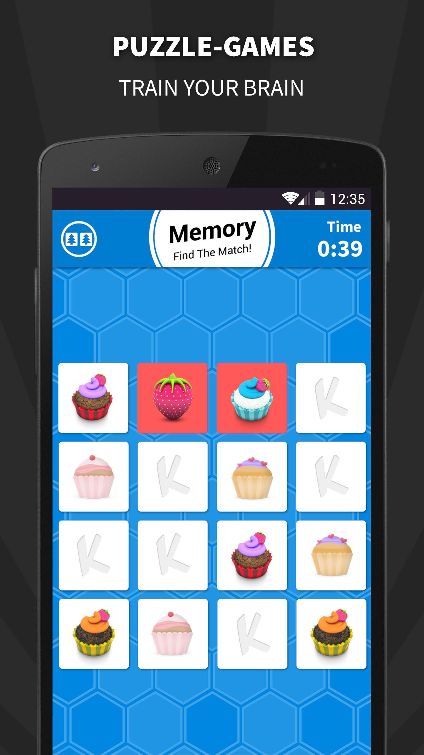 Gehen Sie das Puzzlespiel und treffen Sie gegen Ihre Freunde. Demonstrieren Sie Ihre Fähigkeiten, indem Sie Mind Games spielen und Ihr Gedächtnis verbessern.