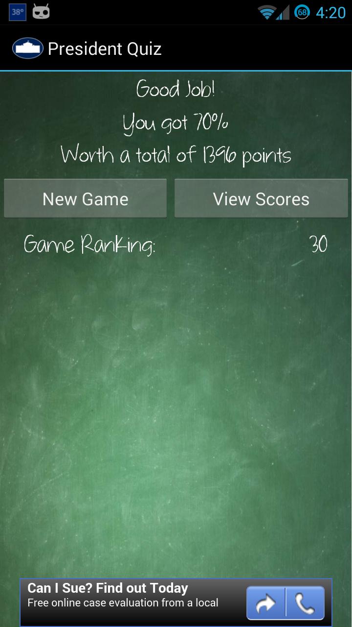 Können Sie die US -Präsidenten identifizieren? Kennen Sie alle Jahre im Amt? Testen Sie Ihr Wissen über die US -Präsidenten mit dieser President Quiz -App. Ein tolles Quizspiel für alle Altersgruppen. Erfahren Sie mehr über die Präsidenten beim Spielen. Halten Sie die Punktzahl darüber, wie gut Sie die Präsidenten kennen.