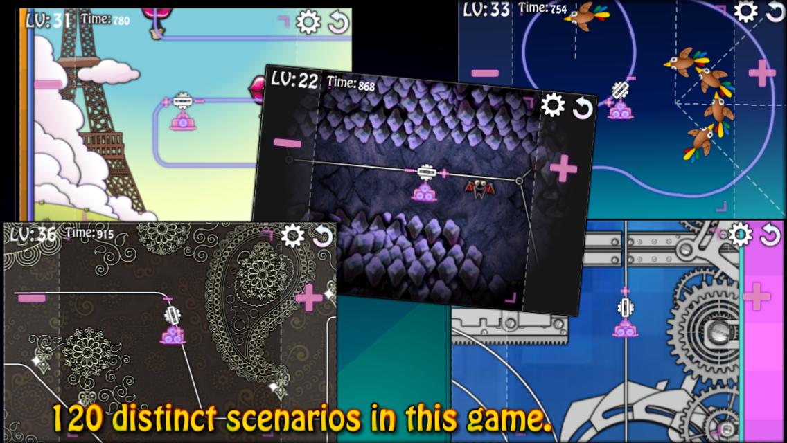 In diesen Spielen erfahren Sie 120 verschiedene Szenarien mit ausgezeichnetem Display. Versuchen Sie, die Hindernisse nicht zu berühren, und sobald Sie die Bewegungsmuster von ihnen bemerkt haben, können Sie leicht passieren.