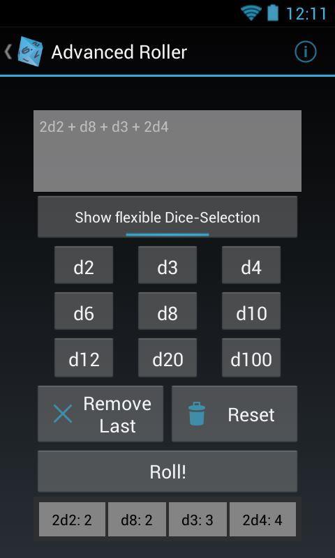 RoleDice besteht aus mehreren Rollenmodulen, mit denen Sie einen oder mehrere Würfel rollen oder mehrere verschiedene Würfel für eine einzelne Rolle kombinieren können.