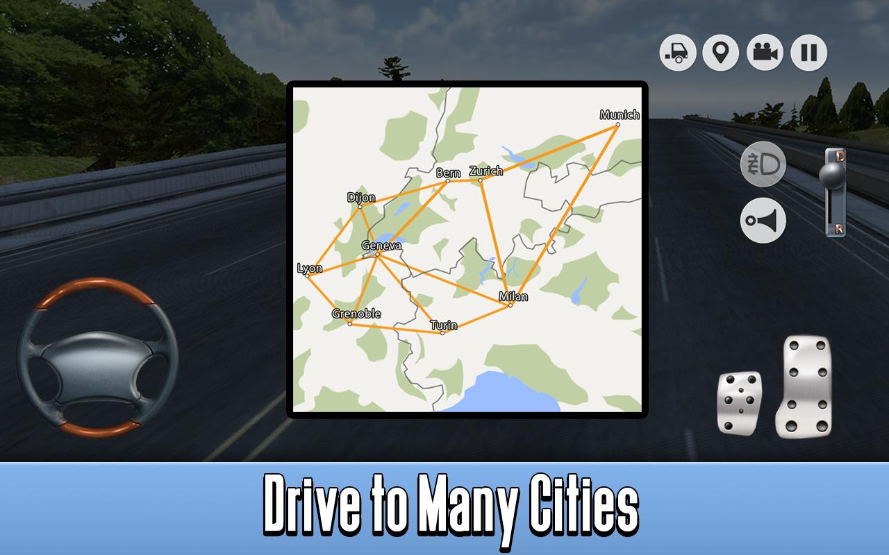 Verwenden Sie die Karte eines Simulators und einen treibenden Pfeil, um die Straße zu überprüfen. Achten Sie auf die Wirtschaft von Simulator - geben Sie Geld für Upgrades zur Verbesserung der Transportladung aus. Entdecken Sie die europäische Straße im Simulator und verdienen Sie Geld für das Fahren von Frachtwagen. Seien Sie ein Lkw -Fahrer mit dem Simulator - Versuchen Sie Langstreckenfahrten, transportieren Sie Fracht, besuchen Sie europäische Städte, tanken Sie den Transport auf der Straße.
