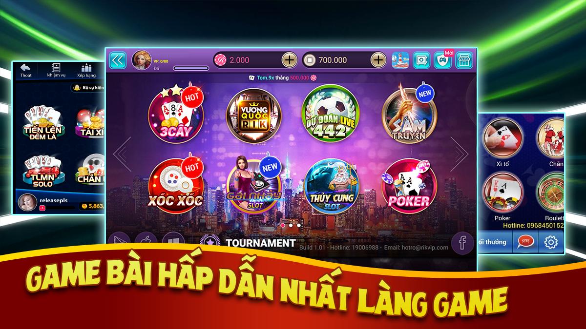 Sobald das Spiel RikVip Doi Thuong, erhalten Sie 5.000 glückliche Chips, um zu beginnen. ? Von hier aus ist die Gelegenheit, jeden Tag Millionen zu verdienen, durchaus möglich. Game Bai Doi Rik VIP ist ein Werkzeug, um Karten zu verdienen und Geld von vielen Menschen zu verdienen. ? Sie werden RikVip -Spieler in der Spitze der Spitze des Geldes mit dem RikVip -Spiel sowie Tipclub bewundern.