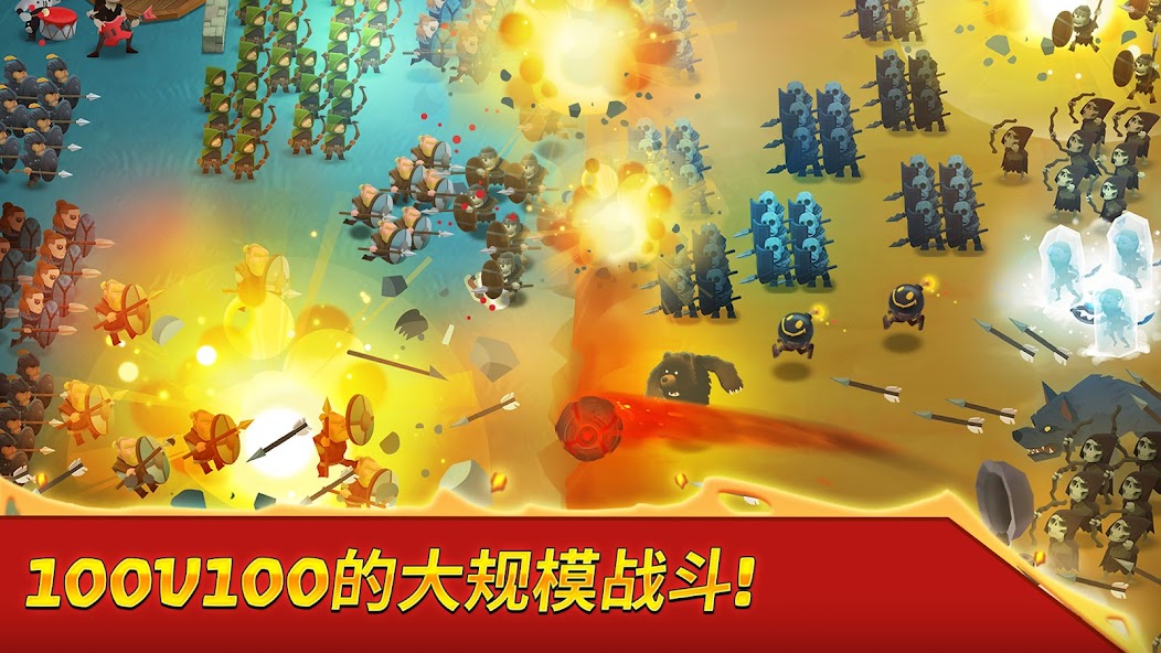 Massive 100v100 -Einheiten -Schlachten - Bauen Sie eine Armee und beobachten Sie, wie Ihre Truppen im Idle -Stil kämpfen. Viele Einheiten und Skins sorgen für einen endlosen Spaß an der Spitze mobiler Spielerlebnisse. Battle Legion legt Sie in die oberste Stufe der angehenden Kommandanten, und wenn Sie sich durch unvergessliche Siege richten, tun Sie Ihre Legion und ihre Truppen auch.