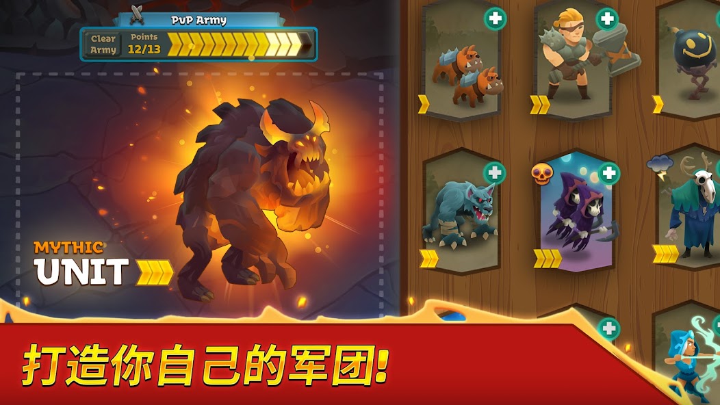 Springen Sie direkt in die Schlägerei Royale of War Brawl gegen epische Monster und Kreaturen und beginnen Sie, Ihre Kampf -Clan -Armee von Legenden aufzubauen. Tauchen Sie in leicht zu larnende Kampfmechanik und stellen Sie sicher, dass Ihre Truppen immer für den nächsten Kampf bereit sind. Mit Updates und neuen Inhalten besteht immer eine neue Herausforderung auf Ihre Truppen in der Kriegswelt der Kriegswelt der Schlachtfelder von Battle Legion .