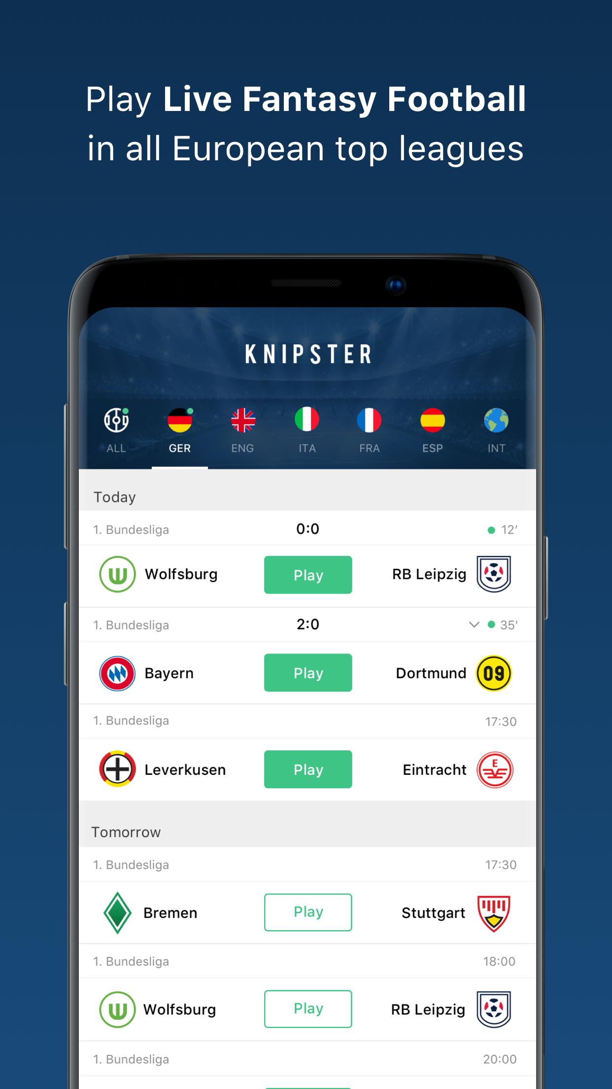 Knipster ist eine Live -Fantasy -Fußballanwendung, bei der Sie mit Ihren Freunden, Kollegen und anderen Fußballfans konkurrieren können. Erstellen Sie eine Gruppe, laden Sie Ihre Freunde ein und setzen Sie Turniere mit den Top -Spielen der größten Ligen Europas ein!