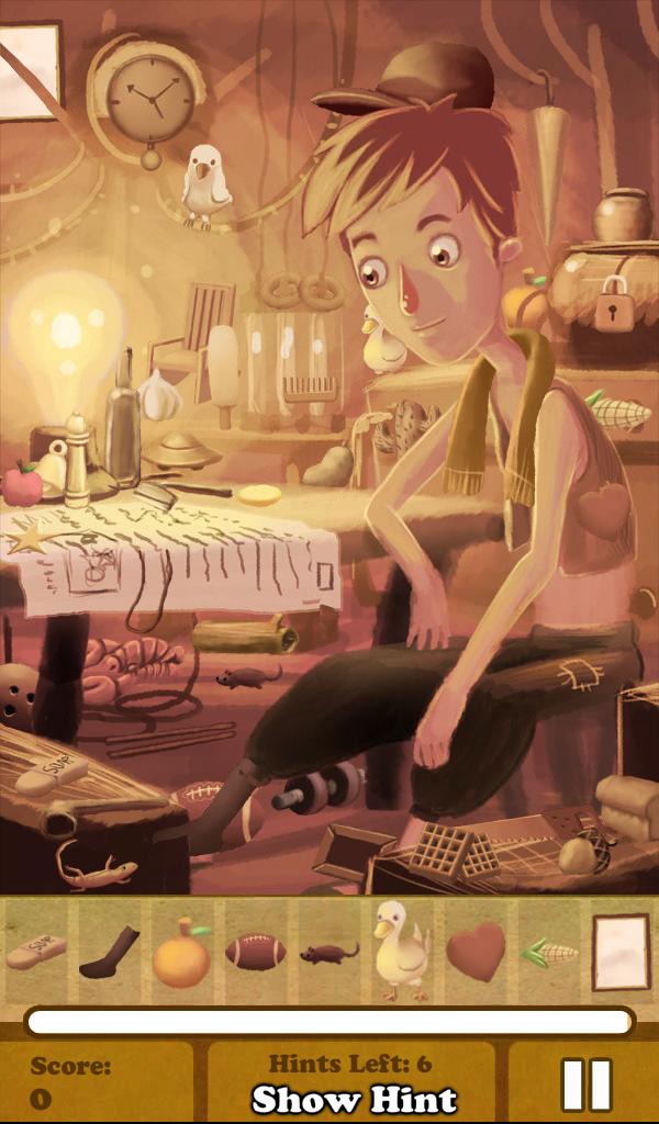 Aladdin ist ein wunderschönes bemalte, verstecktes Objektspiel mit einer großartigen Verdrehungsgeschichte. Genießen Sie 11 schöne handgemalte Levels, während Sie Aladdins Abenteuer in einer von Dampf Punk beeinflussten Welt folgen. Jede Szene ist voll von Gegenständen und für jedes Spiel müssen verschiedene gefunden werden.