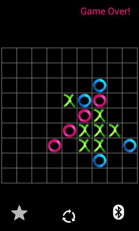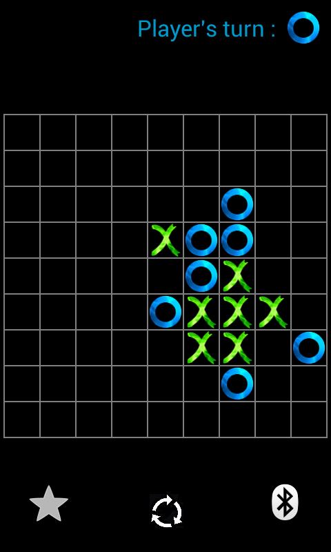 Tic TAC Toe 9 × 9 Zellen mit zwei Spielern in zwei Modi, sodass Sie im selben Bildschirm gegen Ihren Freund spielen können oder jeder mit seinem Android -Gerät spielen und über Bluetooth mit seinem Freund eine Verbindung herstellen kann.