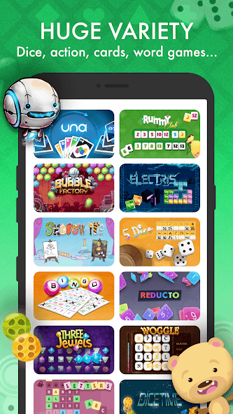 elo hat nicht nur schöne Spiele ausgewählt - alle mit Liebe zum Detail entworfen und für Ihr mobiles Spielerlebnis optimiert - sondern auch für eine große Auswahl. Zusätzlich zu den über 60 Spielen wird jeder Monat hinzugefügt. Unsere beliebtesten Spiele sind Rommé, Una und Reducto. Unsere Klassiker sind neun Männer Morris, Checker, Schach und Go. Bei elo gibt es Würfelspiele wie Twentyone oder Qwixx, Actionspiele wie Ubongo oder Double, Word Games und mehr als nur ein Trivia -Quiz.