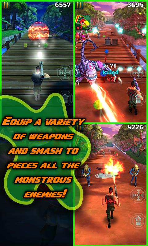 Wer kann dich aufhalten? Laufen Sie durch den Dschungel, um die Horde der schrecklichen und schleimigen fremden Kreaturen aus anderen Welten zu bekämpfen! Die Mission ist es, alle Kerne der außerirdischen Raumschiffe zu zerstören und den Feind zu beseitigen.