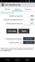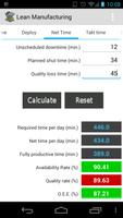 ★ Calcule los indicadores fácilmente importantes de Lean: tiempo requerido, tiempo neto, tiempo totalmente productivo, tasa de disponibilidad, tasa de calidad, efectividad general del equipo OEE, demanda diaria promedio, tiempo de takt, recursos, kanban.