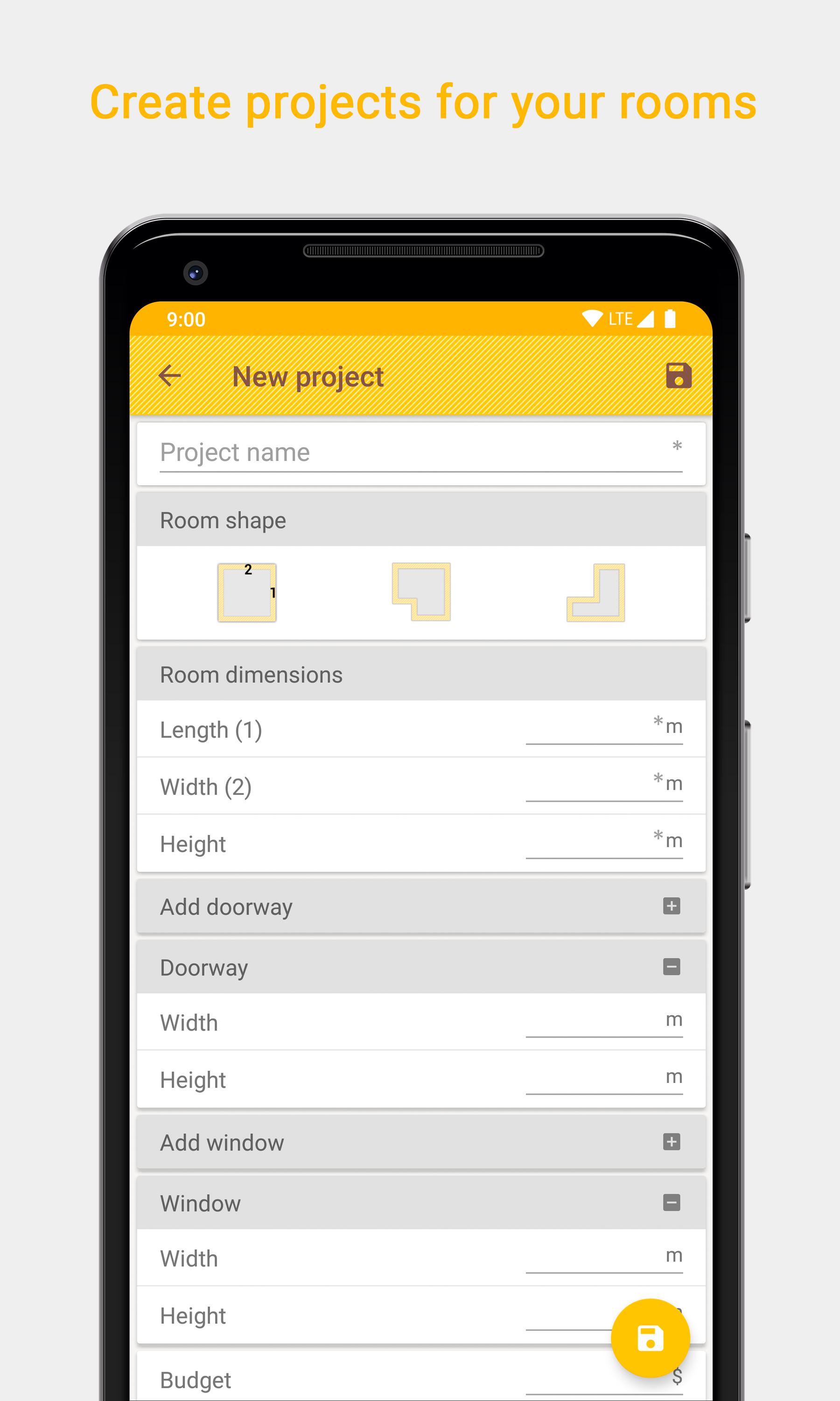 3. Ingrese las dimensiones y características de los materiales de acabado. La aplicación le dirá el estándar, pero puede ingresar su propio (se puede encontrar en el empaque de bienes);