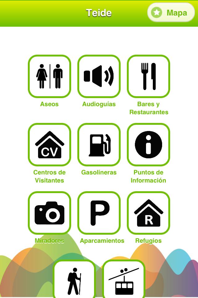 APP offline oficial, que facilita a los visitantes información relacionada con el Parque Nacional del Teide, como centros de visitantes y puntos de información, horarios, zonas de aparcamiento, senderos, miradores, bares y restaurantes, gasolineras, aseos, zonas de picnic y acampada, audioguía y fotos.