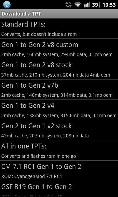*Descargue archivos TPT que convertirán e instalarán una ROM de una vez