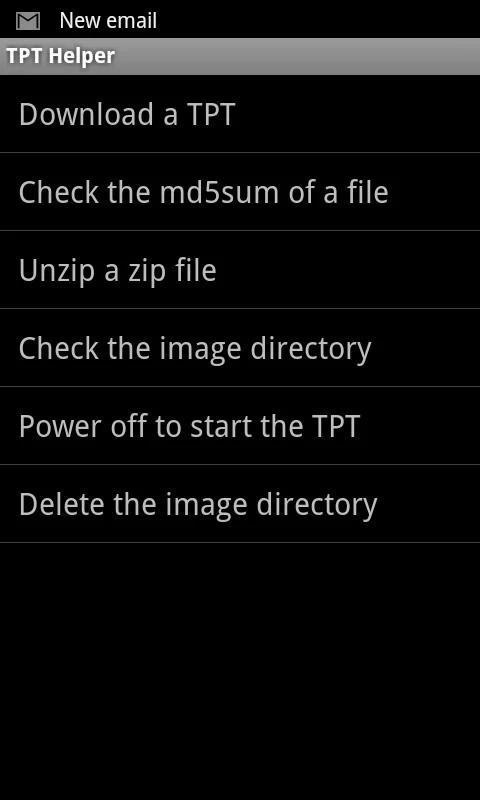 TPT Helper está diseñado para los teléfonos ZTE. Le ayuda a volver a repartar fácilmente el teléfono y para la cuchilla ZTE, convertirlo en el diseño de memoria Gen 2 para permitirle ejecutar las últimas ROM personalizadas. Los teléfonos ZTE admitidos hasta ahora son la cuchilla ZTE/naranja San Francisco, el patín ZTE/naranja Monte Carlo y la vivacidad naranja San Francisco II/T-Mobile.