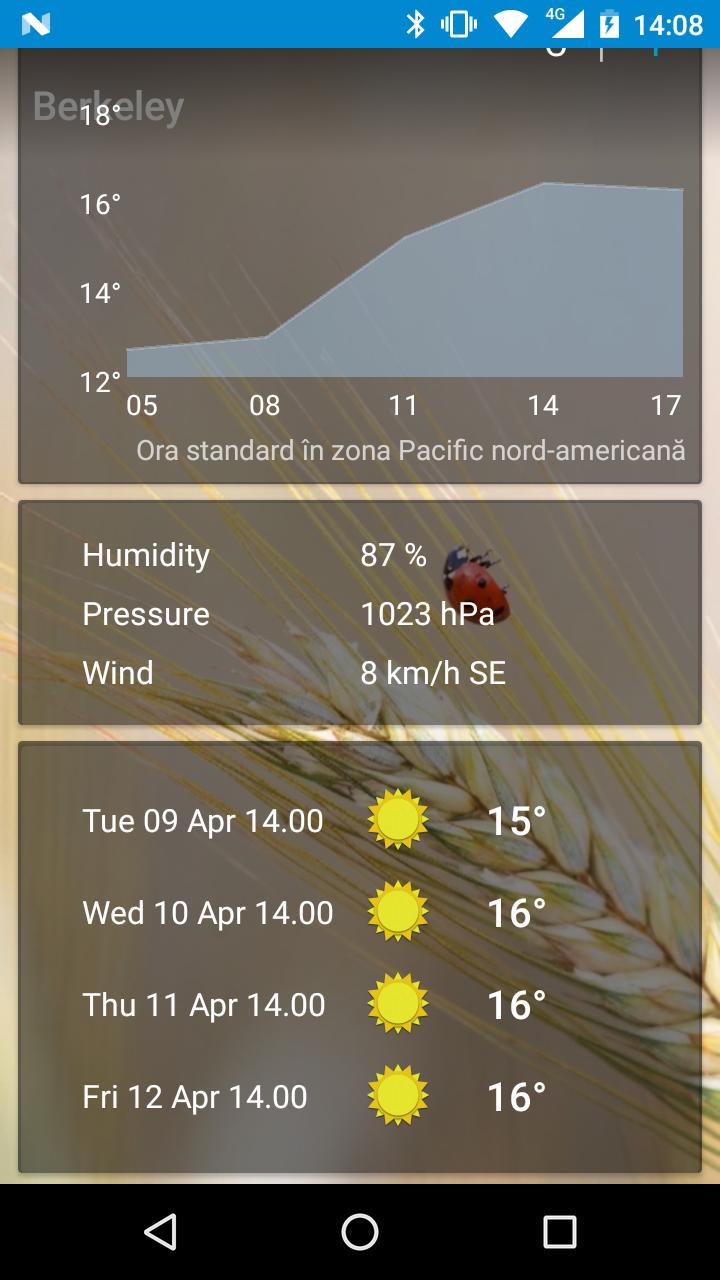 Pronóstico meteorológico de 5 días, incluida la temperatura, la velocidad del viento, la humedad, las condiciones climáticas, la precipitación, la presión y las fotos locales. ¡Divertirse!