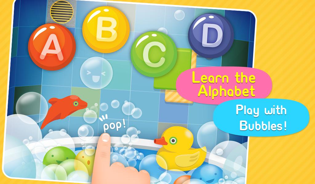 Learn the alphabet during bath time. Play with a ducky and pop the bubbles as you go through the alphabet from A to Z. Alphabets bubbles are not the only ones to pop. What kind of sounds will you hear when you pop the bubbles of various shapes?
